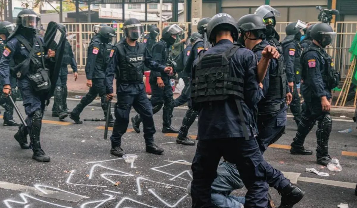 As the situation escalated, Thai riot police responded with non-lethal crowd control measures. Tear gas was fired, rubber bullets were deployed, and loud acoustic devices were used to push back protesters. Both sides faced a standoff that witnessed intermittent skirmishes, with protesters trying to dismantle barriers while security forces sought to maintain the newly established boundary.