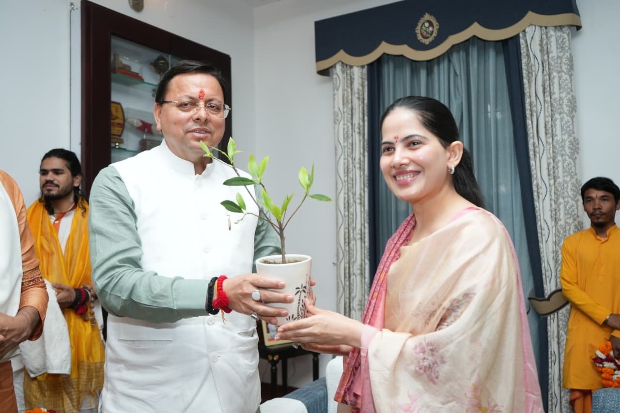 n a spiritually charged gathering marking Uttarakhand’s Silver Jubilee Year, Chief Minister Pushkar Singh Dhami received blessings and the title of ‘Dharm Sanrakshak of Devbhoomi’ (Protector of Devbhoomi’s Dharma) from prominent saints and spiritual leaders of the country. The ceremony, held at the Chief Minister’s residence in Dehradun, reflected an inspiring union of faith, culture, and governance.