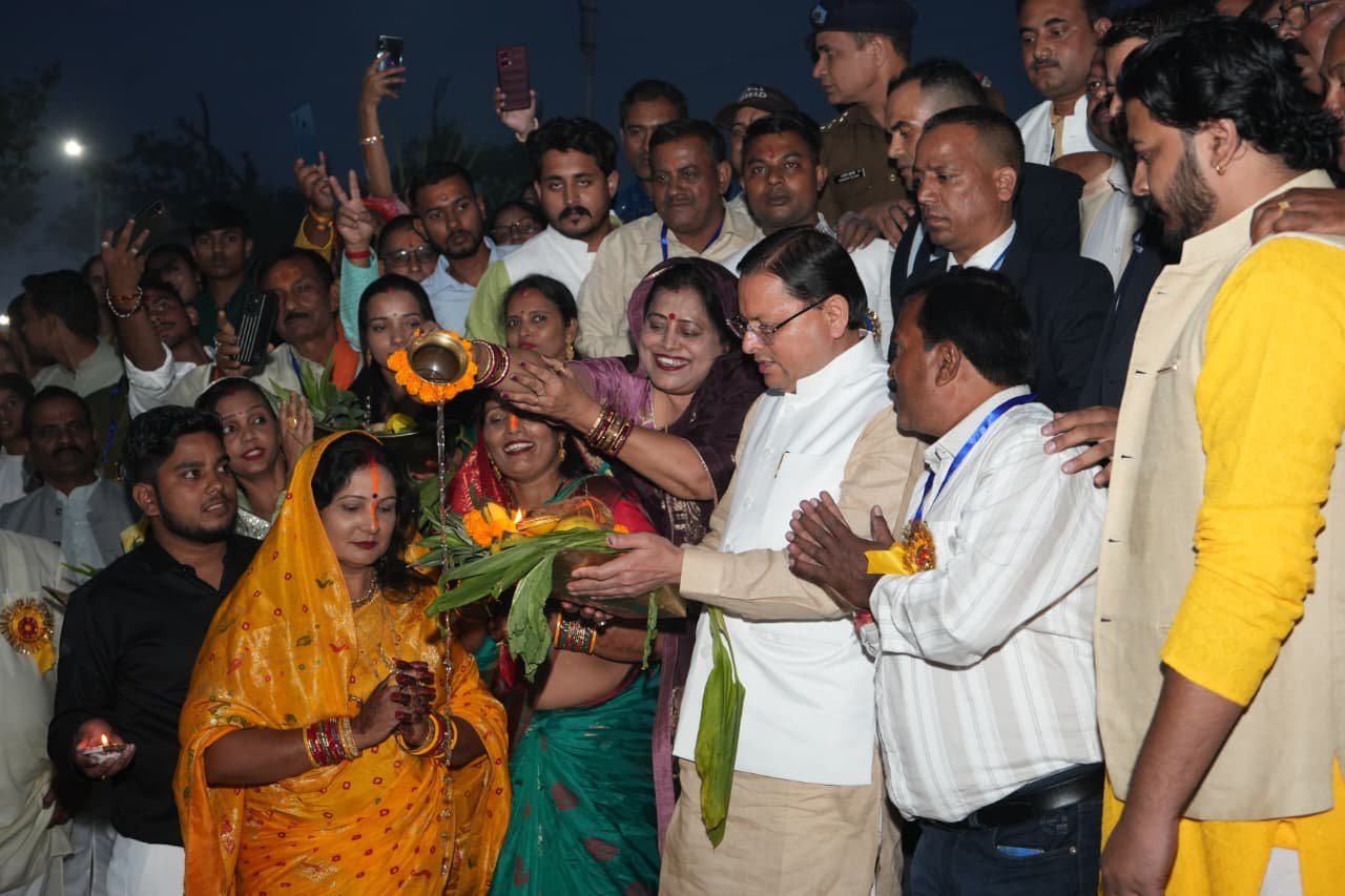 Chief Minister Pushkar Singh Dhami on Monday participated in the Surya Shashti Vrat Mahotsav organised by the Purvanchal Seva Samiti at Sanjay Railway Park, Khatima. The Chief Minister attended the celebration as the chief guest and offered prayers to the setting sun, wishing for the peace, prosperity, and well-being of the people of Uttarakhand.